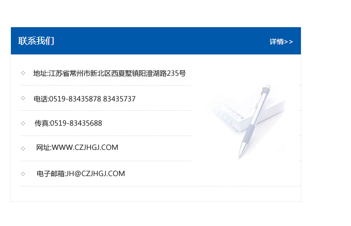 傳真:0519-83435688    郵編:213135    網址:WWW.czjhgj_com.ywzhonghe.com    電子郵箱:JH@czjhgj_com.ywzhonghe.com